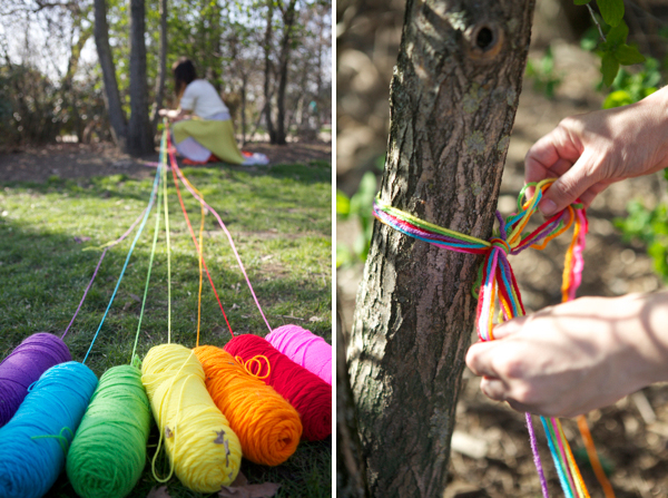 15. Aren’t these colors beautiful? What a fun way to lead the kids to the treasure, with the rainbow yarn!